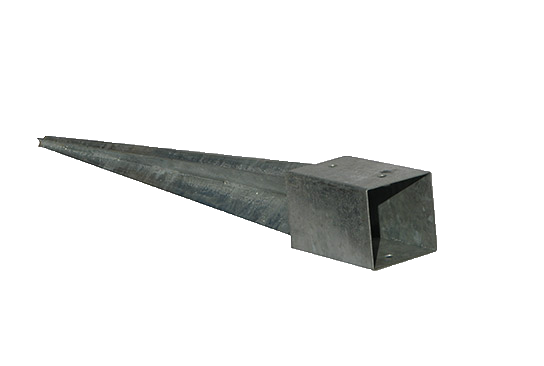 Es una piqueta para poste cuadrado, diseñada para facilitar la instalación y fijación de postes de forma segura y estable. Fabricada con materiales resistentes, esta piqueta se inserta fácilmente en el suelo, proporcionando una sujeción firme que evita el movimiento o la inclinación del poste.